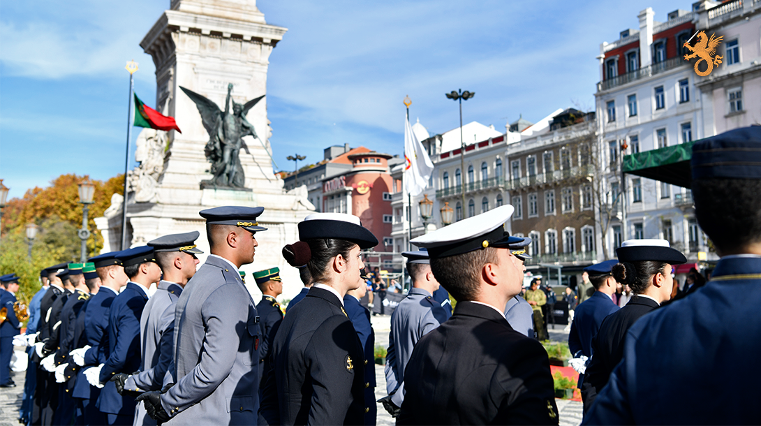 A cerimónia integrou uma formatura conjunta da Marinha, Exército, Força Aérea, GNR, PSP, Bombeiros Sapadores de Lisboa e alunos do Colégio Militar e do Instituto dos Pupilos do Exército​, seguindo-se o Hastear da Bandeira Nacional e a deposição de uma coroa de flores junto ao monumento aos Restauradores, em homenagem aos que serviram Portugal na defesa da Pátria.