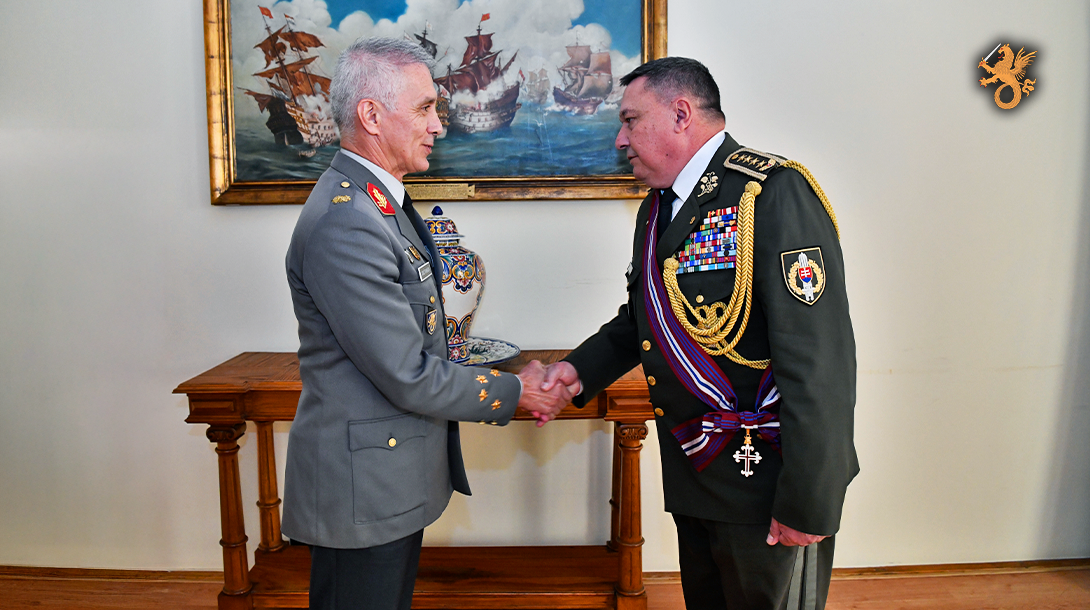 O General Chefe do Estado-Maior-General das Forças Armadas (CEMGFA), General José Nunes da Fonseca, recebeu o Chefe do Estado-Maior-General das Forças Armadas da Eslováquia, General Daniel Zmeko, por ocasião da sua visita oficial a Portugal.