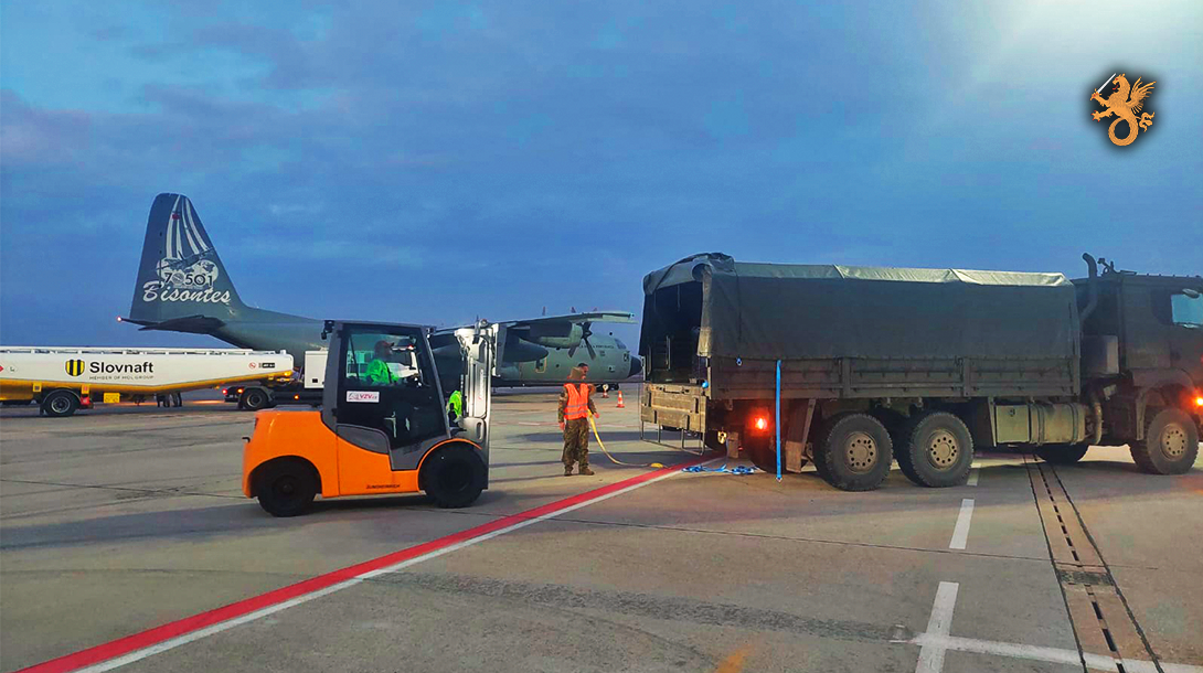 A 1.ª Força Nacional Destacada, composta por um Subagrupamento do Multinational Battle Group Slovakia, recebeu um voo de sustentação logística realizado por uma aeronave C-130, na Eslováquia.