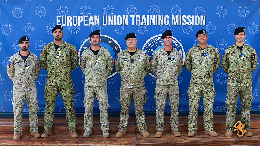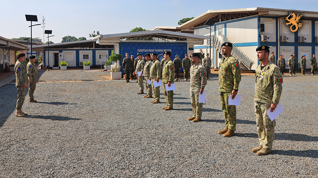 Os militares do Contingente Português foram distinguidos com a Medalha “The Common Security and Defence Policy Service Medal”, em reconhecimento pelo seu desempenho no decurso das atividades de mentoria desenvolvidas, no âmbito da Missão de Treino da União Europeia na República Centro-Africana (EUTM RCA).