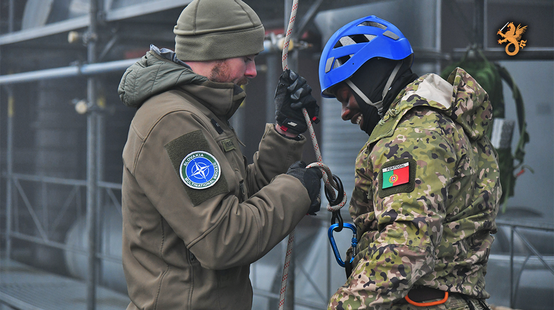 A 1.ª Força Nacional Destacada, composta por um Subagrupamento do Multinational Battle Group Slovakia, realizou uma atividade de escalada com o apoio do Contingente Checo, integrada no plano de treino conjunto entre forças aliadas, na Eslováquia.