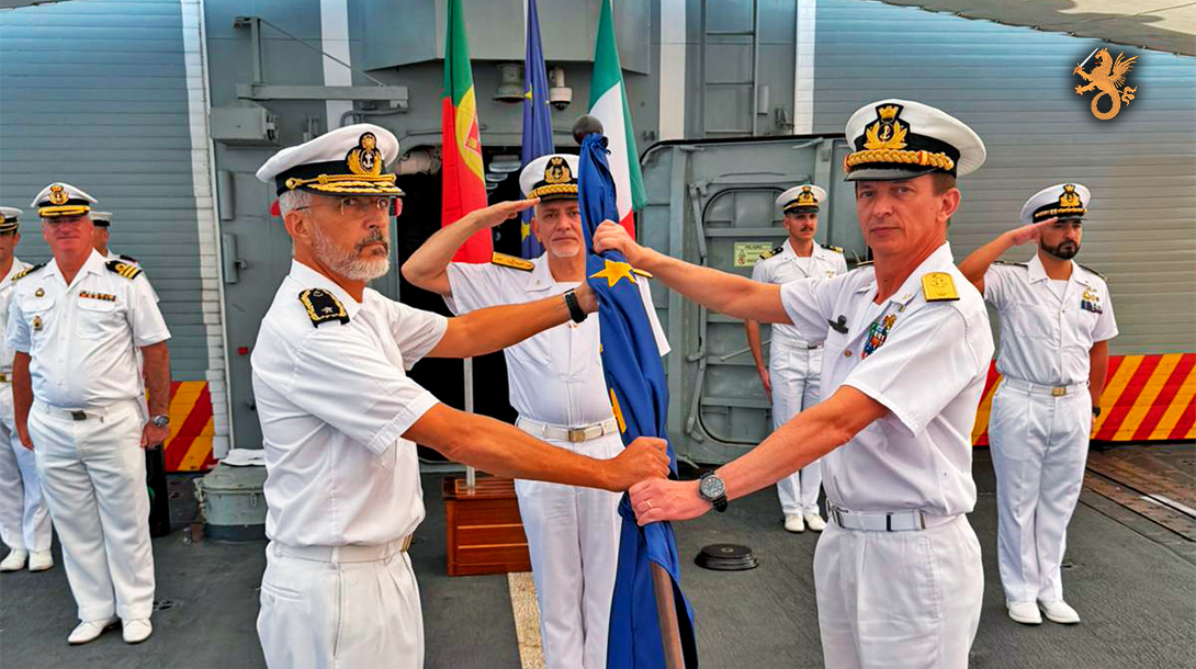A cerimónia de passagem de comando, realizada no dia 20 de fevereiro, marcou a transição de responsabilidades para o Rear Admiral Daniele Paolo Martinuzzi, da Marinha Italiana, que assume agora o comando da 52.ª Rotação da EUNAVFOR.